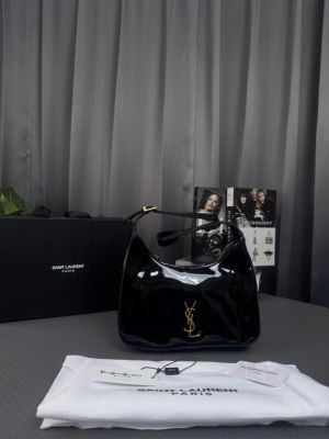 YSL SAINT LAUREINT GLOSSY BLACK HOBO SHOULDER BAG WITH DUST BAG & OG MAGNETIC BRAND BOX HEAVY QUALITY - GJ961
